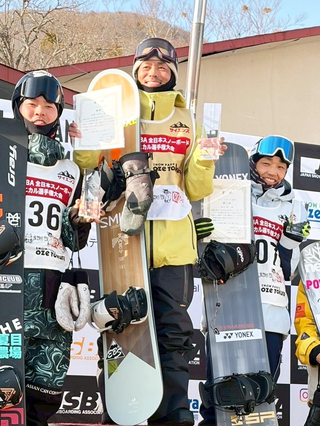 その後、尾瀬戸倉スキー場で開催された第33回JSBA全日本スノーボードテクニカル選手権大会では、